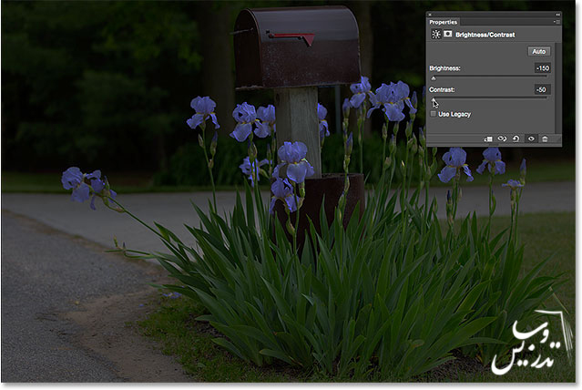 در تصویر من فتوشاپ Brightness=54 و Contrast=66 تنظیم کنید. به احتمال قوی در مورد عکس شما این اعداد متفاوت هستند: