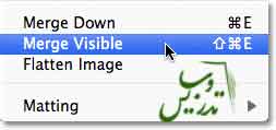 کلید Alt را نگه دارید و سپس از منوی Layer گزینه Merge Visible را انتخاب کنید: