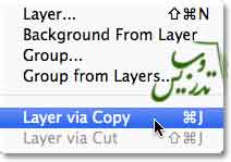 ار منوی Layer گزینه New و سپس Layer via Copy را انتخاب کنید و یا کلید Ctrl+J را بزنید و یا لایه پس زمینه را بر روی لینک ایجاد لایه جدید دراگ کنید.
