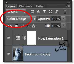 گام6: نوع ترکیب لایه را به Color Dodge تغییر دهید.