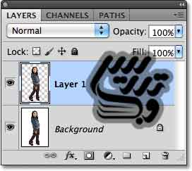 برای کپی کردن یک ناحیه در یک لایه جدید میتوان از کلید Ctrl+J استفاده کرد لایه جدید را میتوانید در پنل لایه ها مشاهده کنید که با عنوان Layer 1در بالای لایه های دیگر قرار دارد: