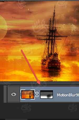 گام 13: بالای تصویر و روی کشتی را ماسک کنید تا افکت افقی محو تر شود