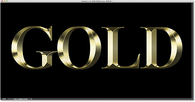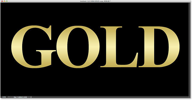 نتیجه به شکل زیر خواهد شد و قسمت تیره تر رنگ طلایی به بالا و پایین متن منتقل می شود و قسمت روشن تر درمیانه ی متن قرار می گیرد: