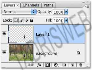 برای کپی کردن این لایه هم از همان تکنیک Ctrl+J استفاده کنید. لایه کپی بکگراند در بین لایه بکگراند و لایه Layer 1قرار خواهد گرفت: