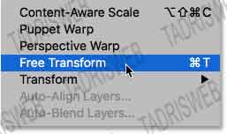 برای تغییر اندازه از منوی Edit گزینه Free Transformرا انتخاب کنید: