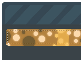 یک انتخاب ایجاد کنید، آنرا کمی کوچکتر از نوار طلایی ایجاد کنید و نواحی خارج از آن را در لایه دایره های بزرگ حذف کنید حالا در داخل مستطیل دوایر طلایی با تن رنگ های #755D34,# FDDAAE, F7C568# ایجاد کنید.