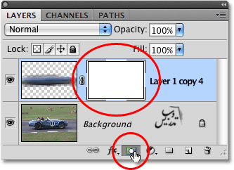 ما میبینم که جلوه محو شدگی حرکت ما خود ماشین ما رو هم پوشونده در حالیکه باید عقب ماشین باشه و بنظر بیاد ماشین از افکت خارج شده . برای همین لایه محو شدگی حرکت رو انتخاب و روی ماسک لایه کلیک می کنم: