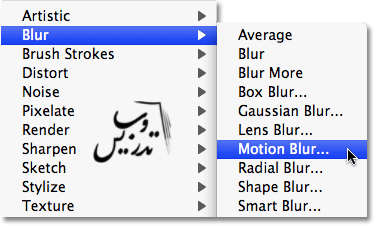 حالا که ماشین ما بطور مستقل تو لایه ی خودشه لایه رو انتخاب می کنیم و از منوی Filter گزینه Blur و از آنجا گزینه Motion Blur را انتخاب کنید.